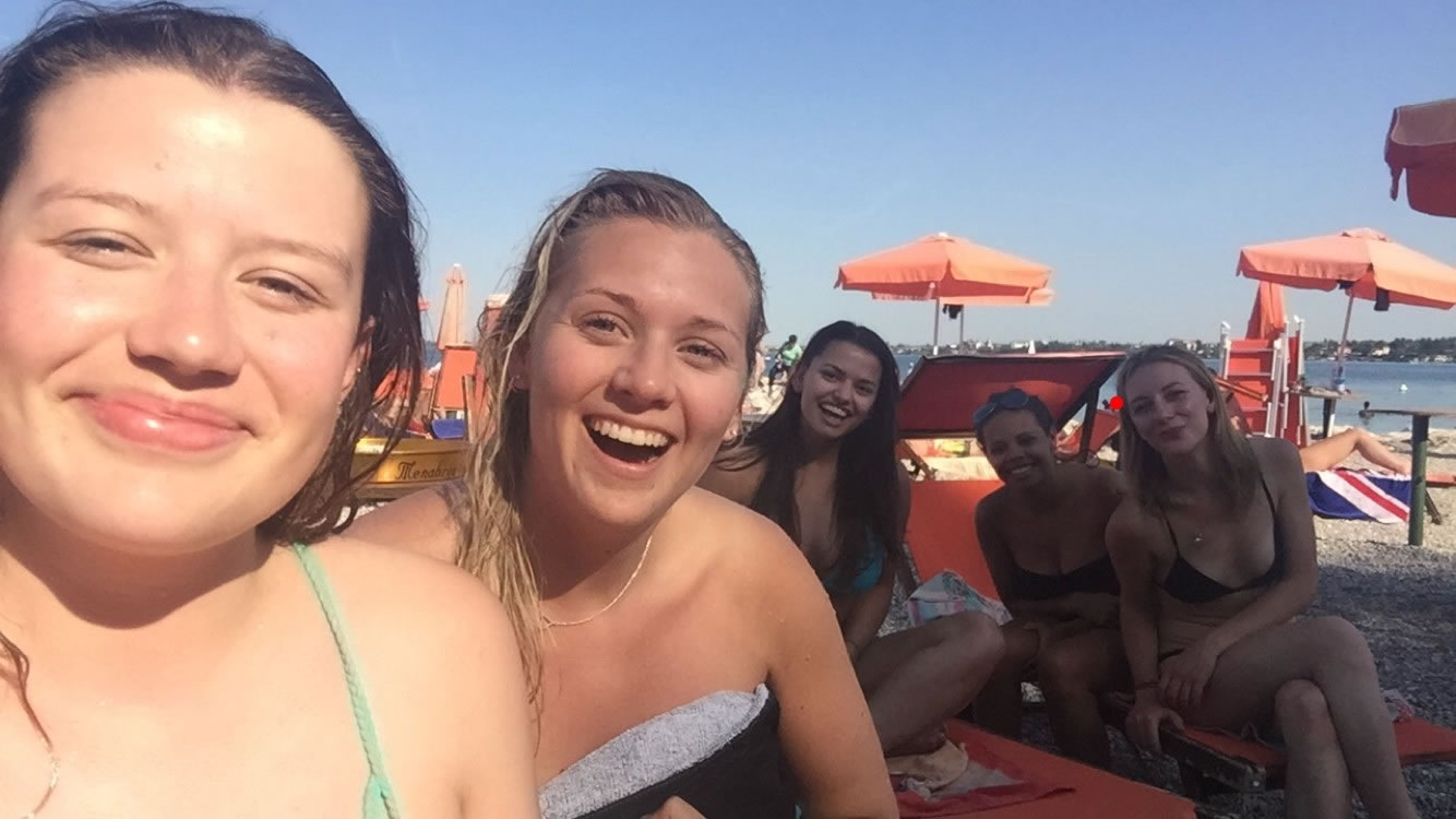 My weekends have been spent laying in the sun and venturing around Gussago and it’s proximities. On a day off (Italians are as bad with strikes as the Spanish are with bank holidays), the Gussago girls and I tavelled over to Verona for an afternoon to be ladies who lunch on the river with Megan. We also made an appearance at Lake Garda one weekend, again to lunch on a lake. We really have made a habit of prosecco fuelled lunches overlooking some form of water. After I had sufficiently burned my back in the mid afternoon sun at the dinner table, we strolled on down to the beach where we took some sun loungers and had free mojitos bought to us on a tray. What is our life.
